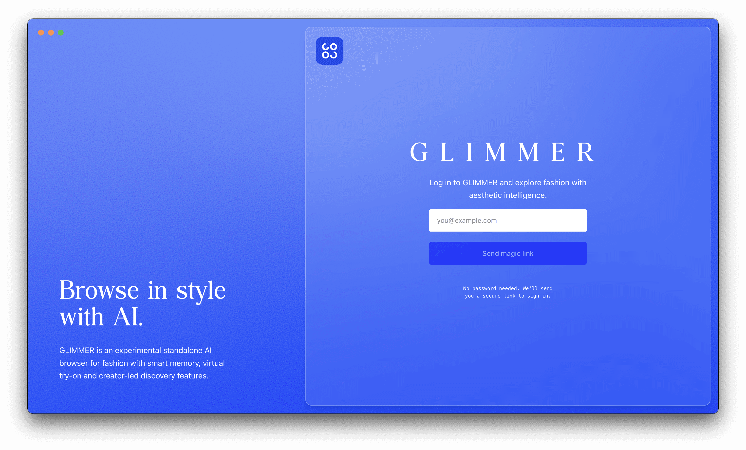 GLIMMER is an experimental standalone browser with smart memory, virtual try-on and creator-led discovery features.